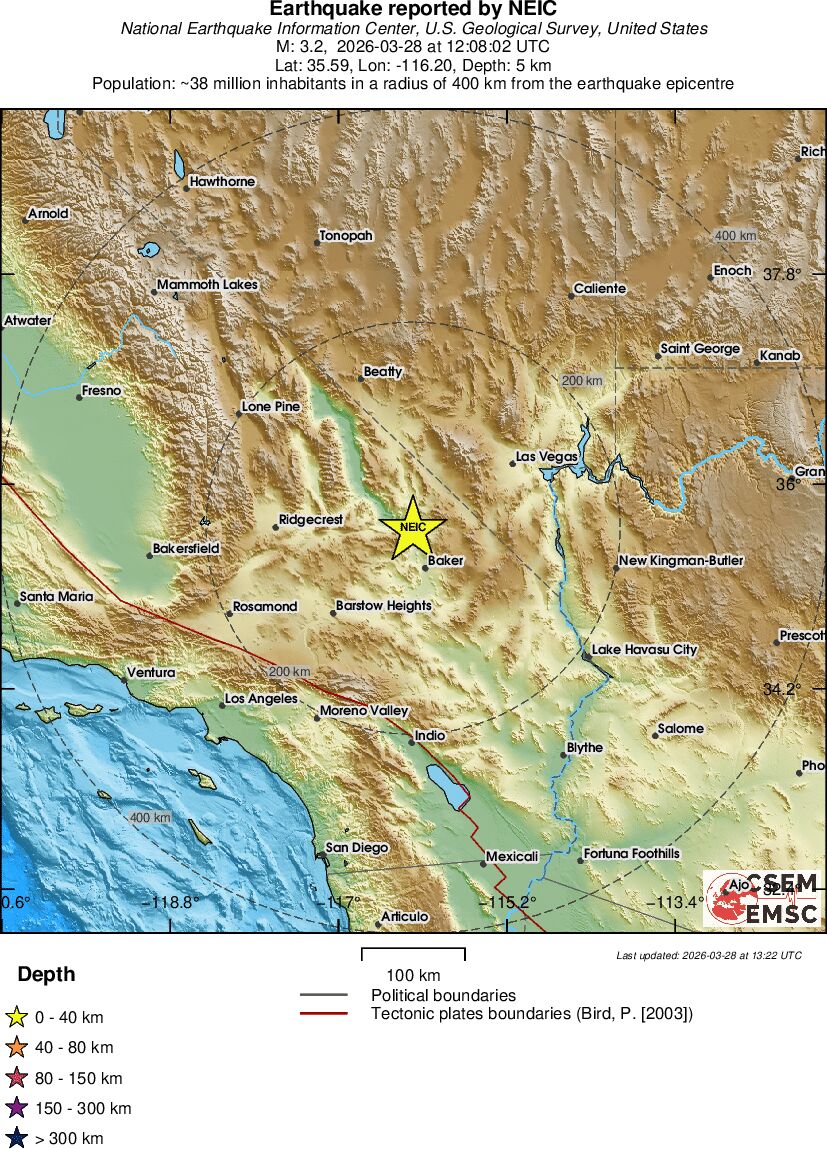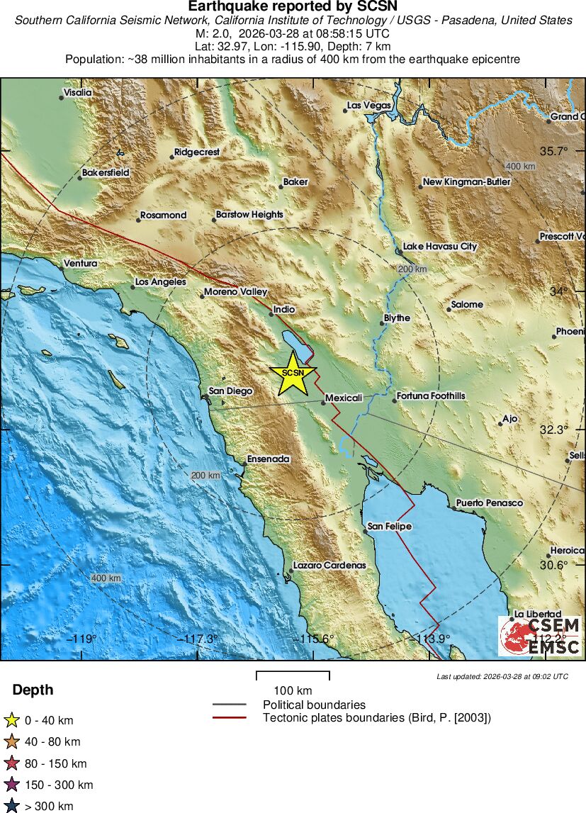 | 3.3 | 0.5 | 1707 | 07:08 | Link | Minor Earthquake - SOUTHERN CALIFORNIA - Today |