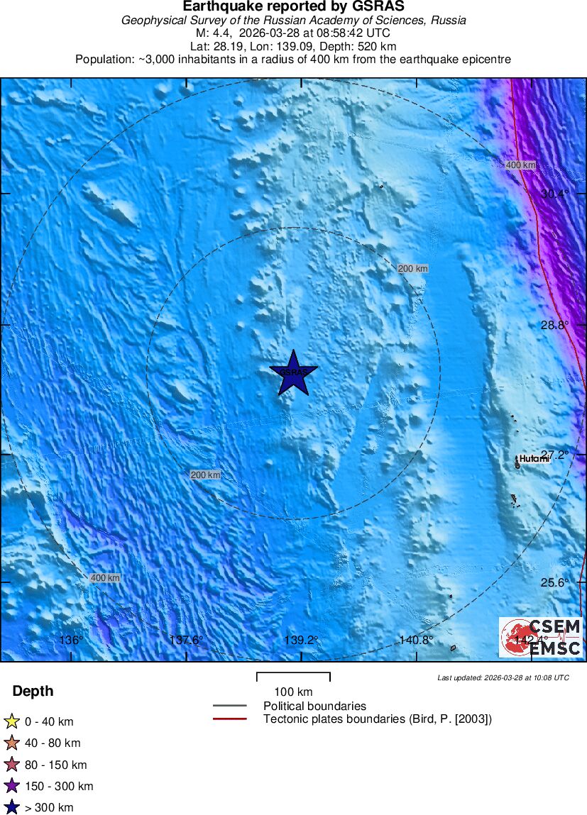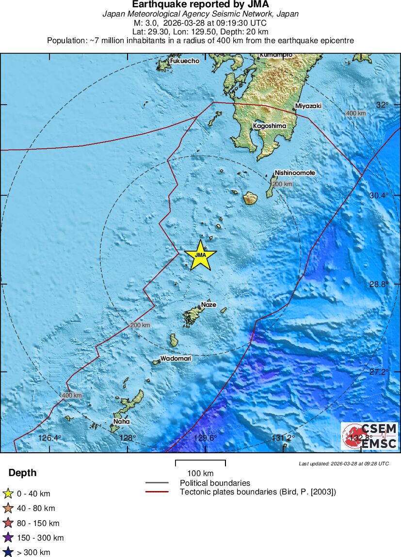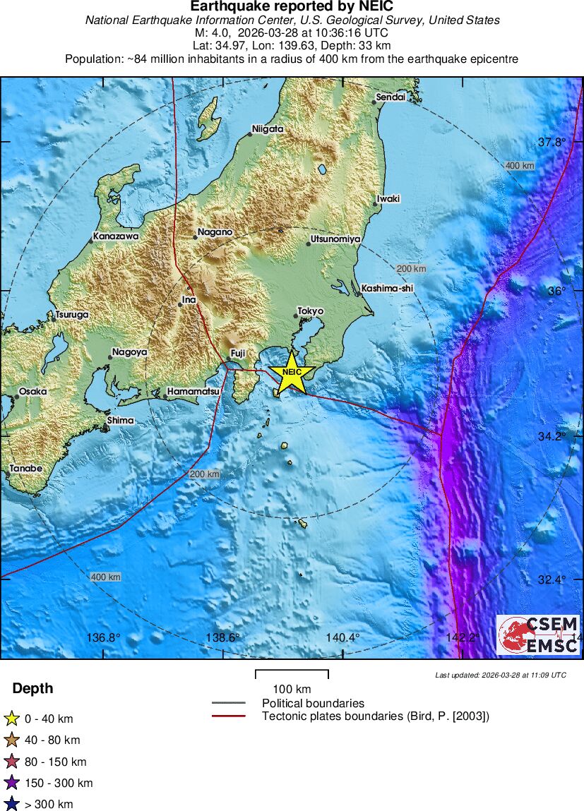 | 4 | 33.2 | 6987 | 05:36 | Link | Light Earthquake - NEAR S. COAST OF HONSHU, JAPAN - Today |