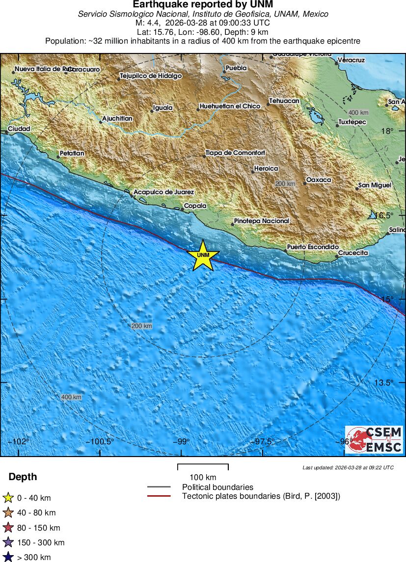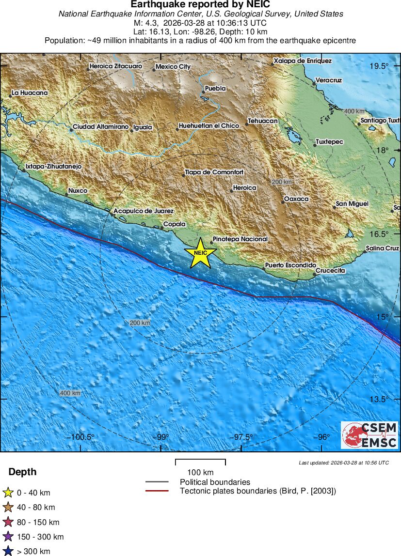 | 4.6 | 10 | 1199 | 05:36 | Link | Light Earthquake - OFFSHORE OAXACA, MEXICO - Today |