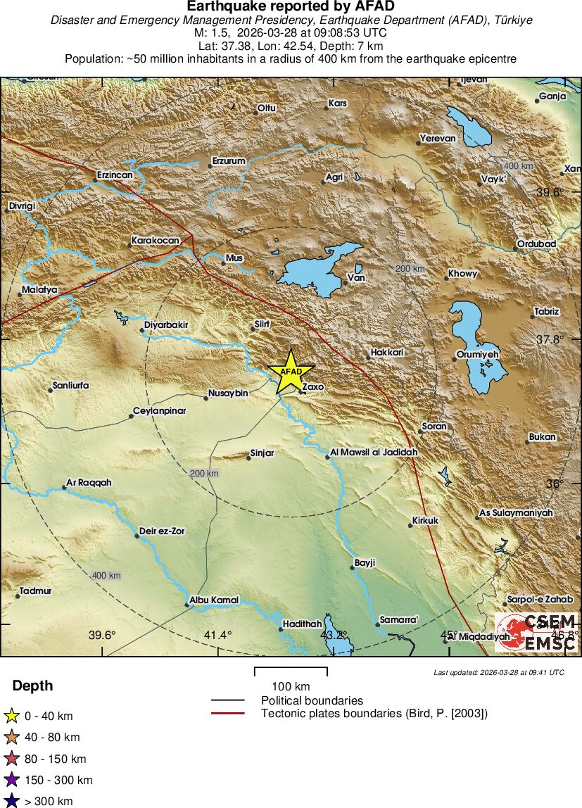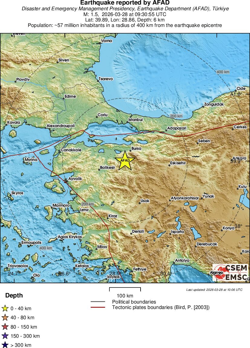 | 1.5 | 10.1 | 6206 | 05:48 | Link | Minor Earthquake - WESTERN TURKEY - Today |