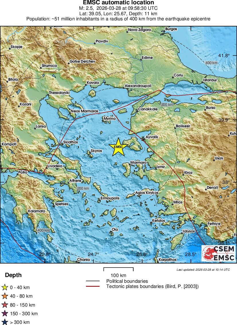 | 1.1 | 9.4 | 6101 | 05:06 | Link | Minor Earthquake - WESTERN TURKEY - Today |
