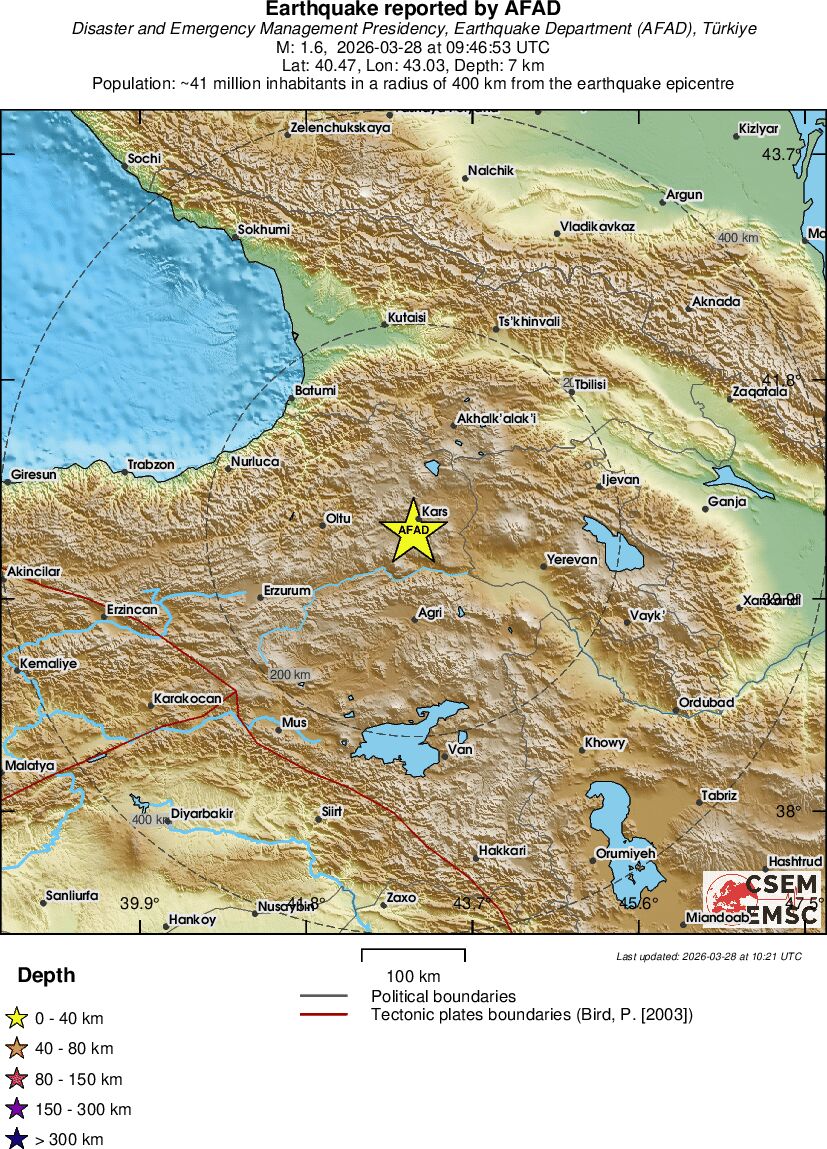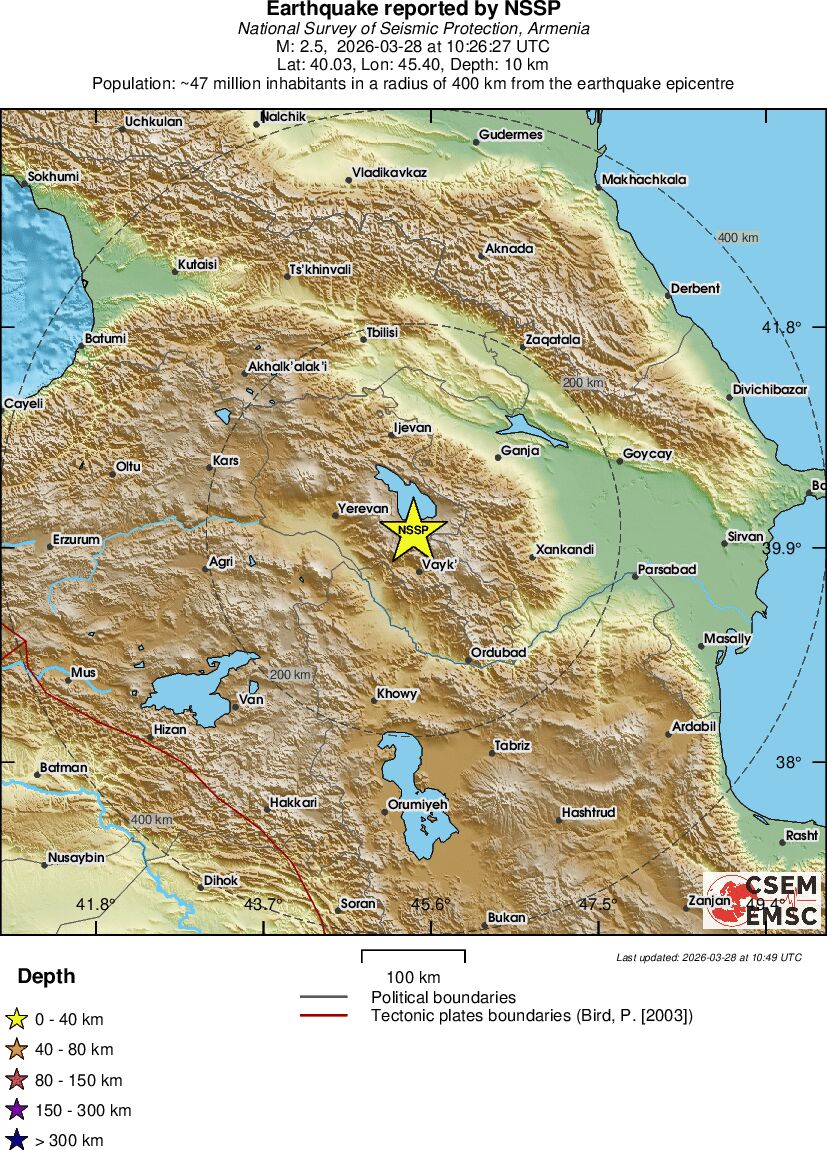 | 2.5 | 10 | 6710 | 05:26 | Link | Minor Earthquake - ARMENIA - Today |