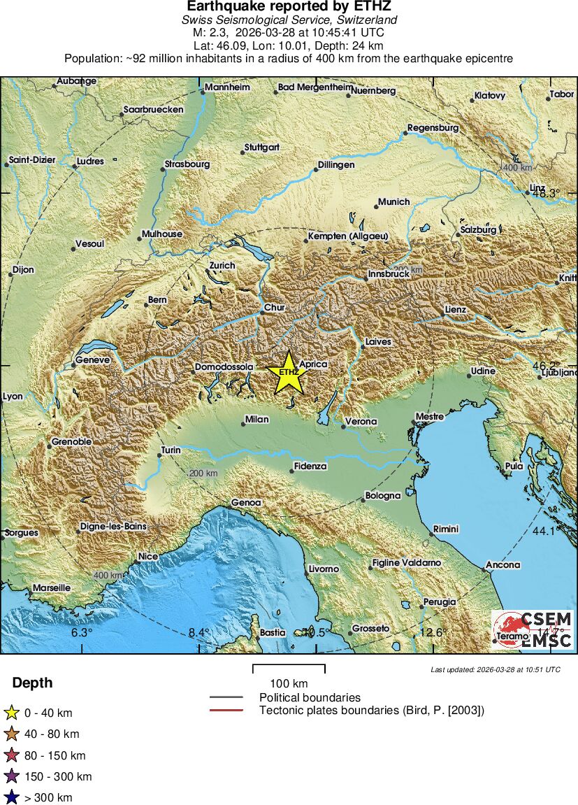 | 2.3 | 24.2 | 5065 | 05:45 | Link | Minor Earthquake - NORTHERN ITALY - Today |