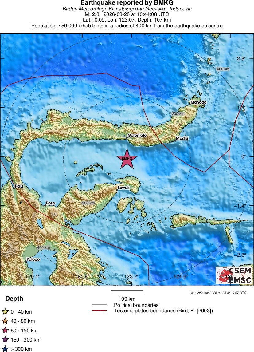 | 2.8 | 107 | 9547 | 05:44 | Link | Minor Earthquake - SULAWESI, INDONESIA - Today |