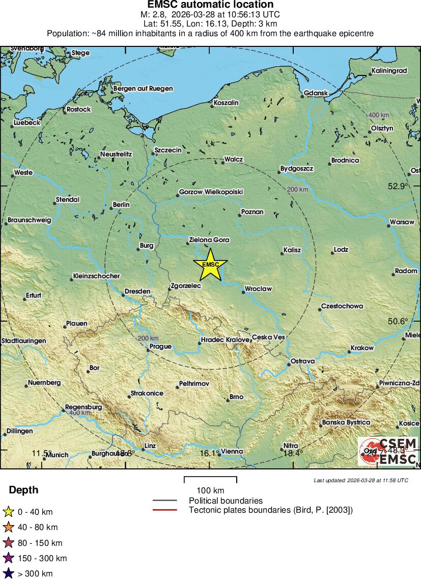 | 2.8 | 3 | 5134 | 05:56 | Link | Minor Earthquake - POLAND - Today |