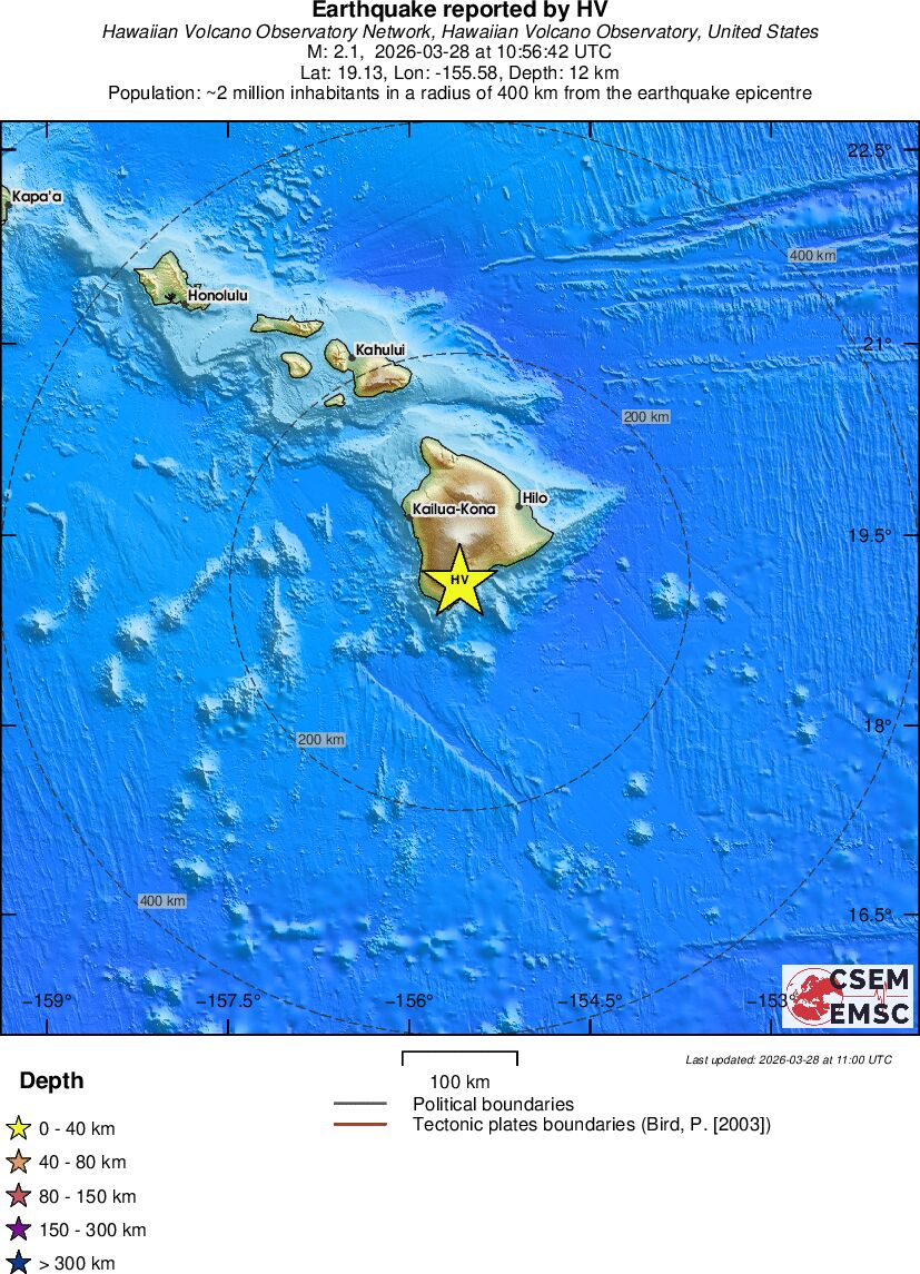 | 2.1 | 12 | 4291 | 05:56 | Link | Minor Earthquake - ISLAND OF HAWAII, HAWAII - Today |