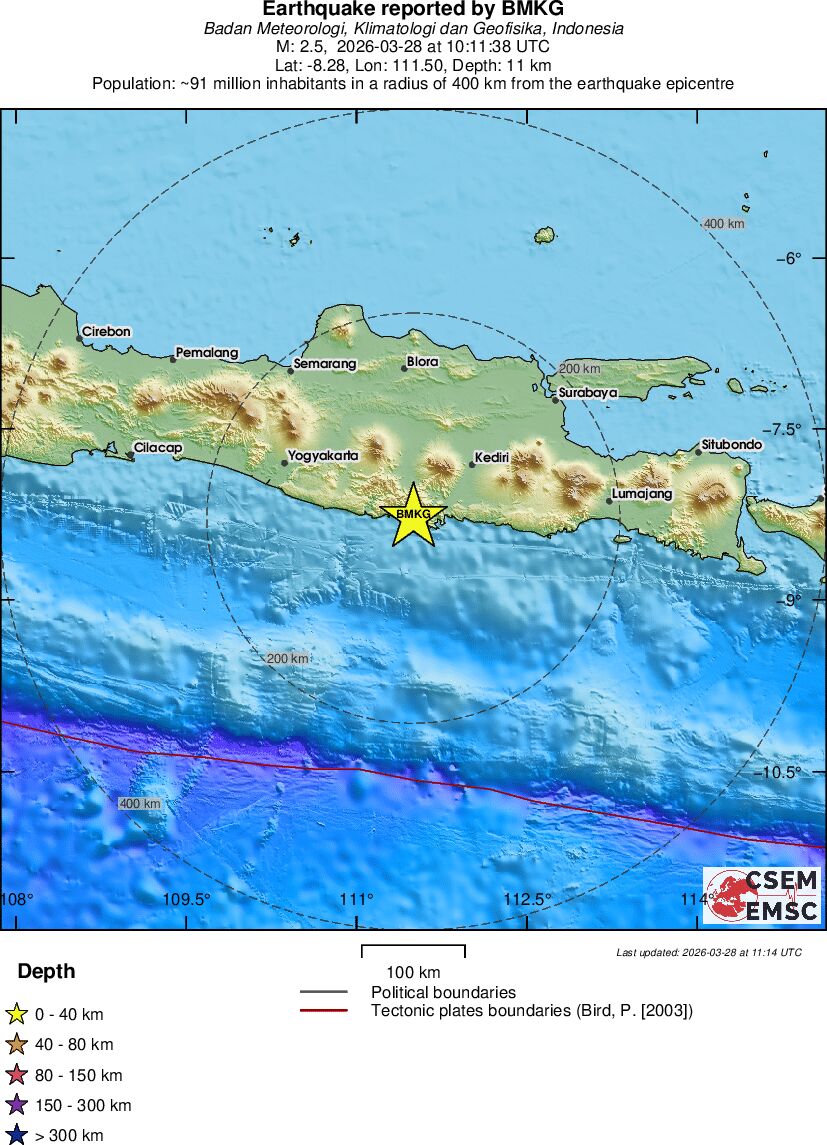 | 2.5 | 11 | 10486 | 05:11 | Link | Minor Earthquake - JAVA, INDONESIA - Today |