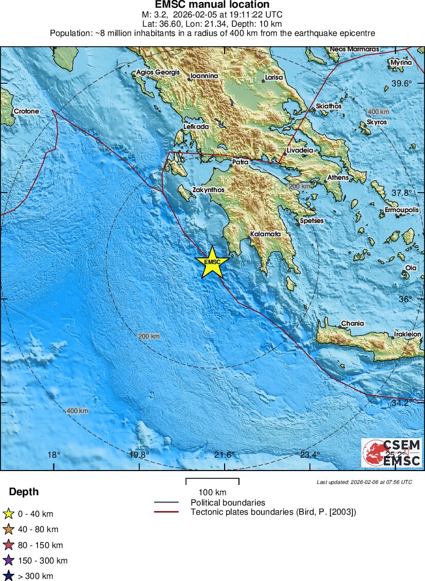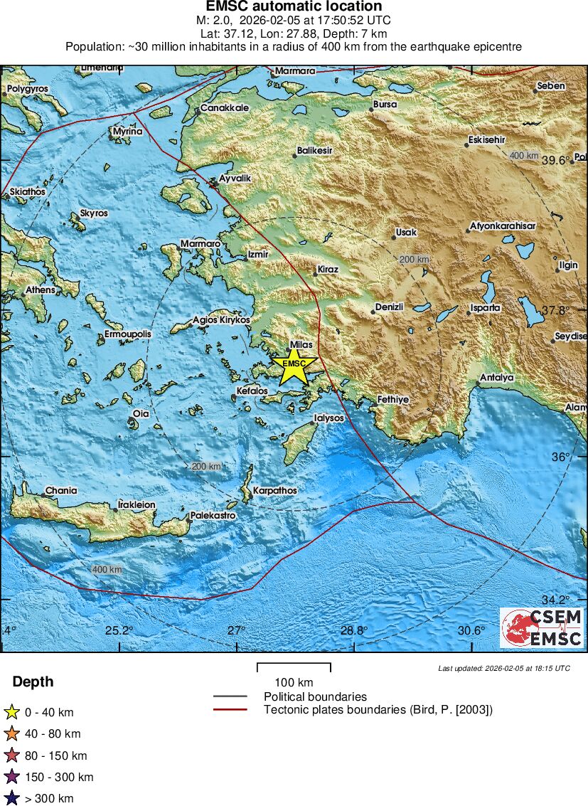| 2 | 3.4 | 6005 | 11:56 | Link | Minor Earthquake - AEGEAN SEA - February 5, 2026 |