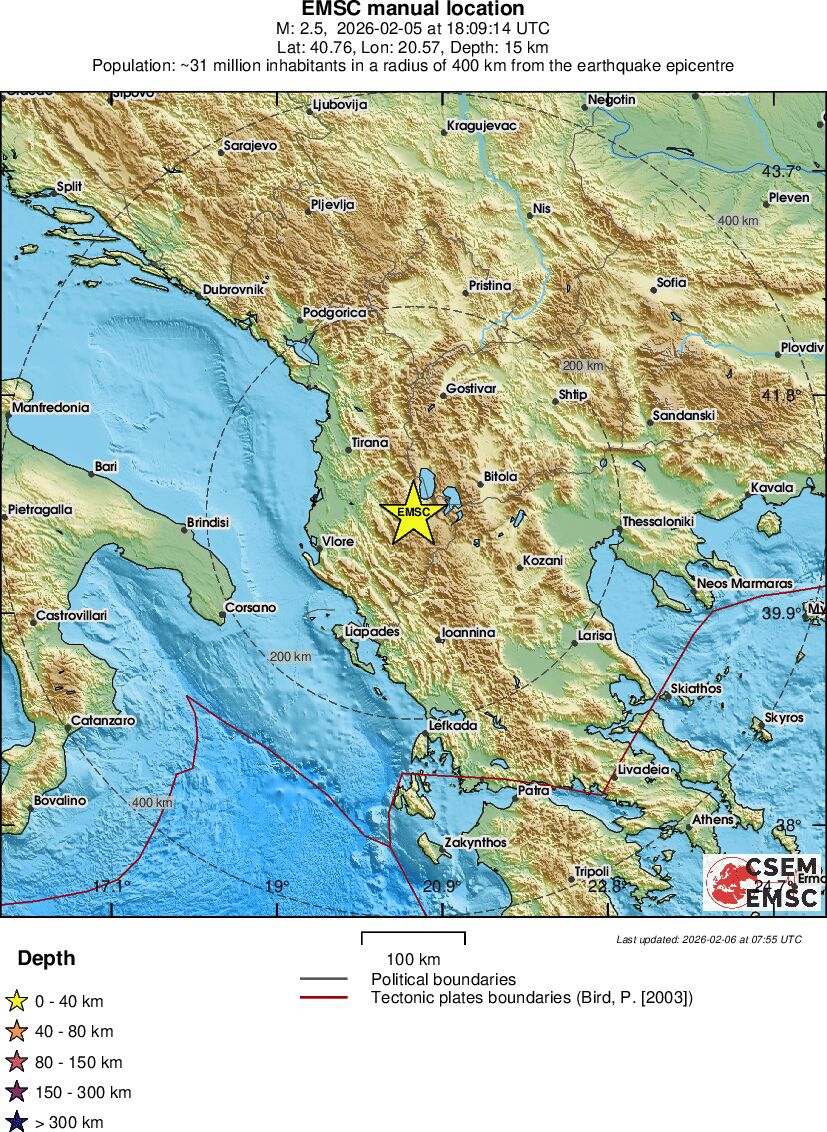 | 3.9 | 15 | 5708 | 12:09 | Link | Minor Earthquake - ALBANIA - February 5, 2026 |