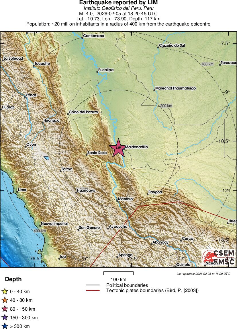 | 4 | 117 | 2975 | 12:20 | Link | Light Earthquake - CENTRAL PERU - February 5, 2026 |